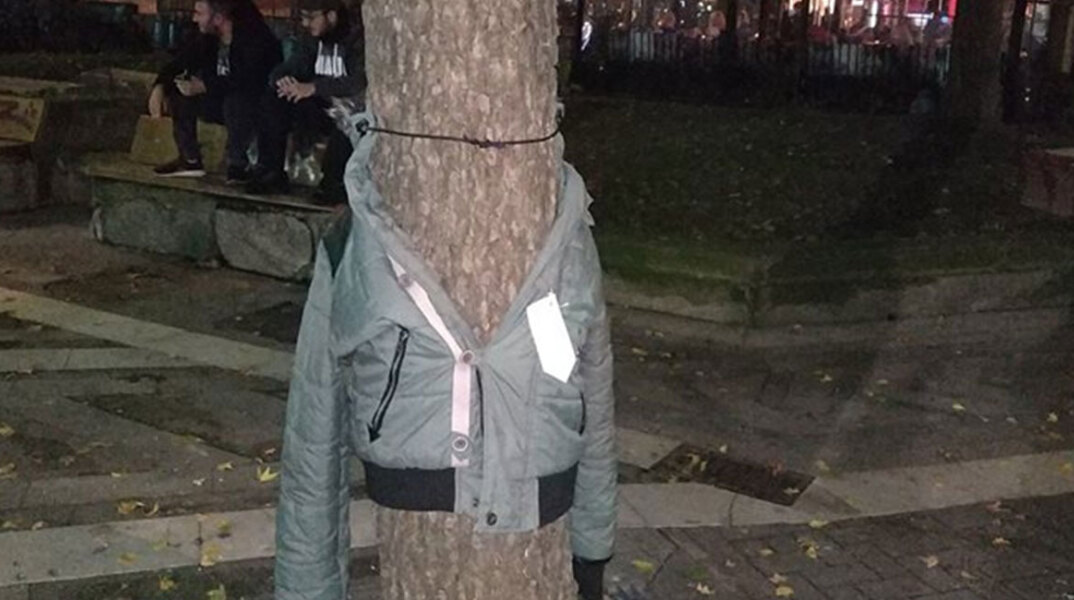 Στη Λάρισα έντυσαν τα δέντρα με μπουφάν για τους φυλακισμένους και τους αστέγους (εικόνες)