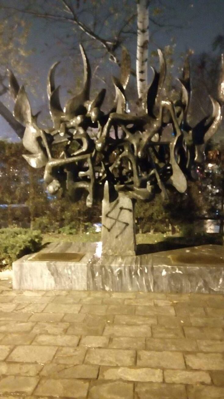 Για ακόμη μια φορά άγνωστοι βεβήλωσαν χτες το μνημείο του Ολοκαυτώματος, στην πλατεία Ελευθερίας, στο κέντρο της Θεσσαλονίκης.