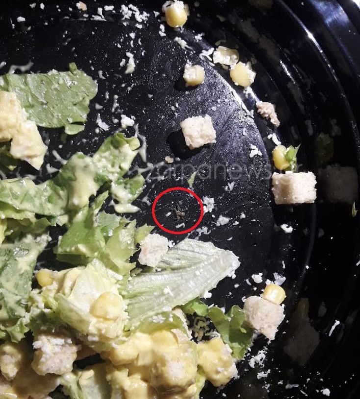 Δυστυχώς όμως το περιεχόμενο της σαλάτας τους έκοψε την όρεξη, καθώς σε αυτό περιλαμβάνονταν και μια ολοζώντανη «χαριτωμένη» αράχνη, όπως φαίνεται και στις σχετικές φωτογραφίες.