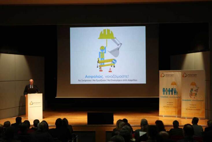 Σημαντική ήταν οι παρουσία εκπροσώπων του ΕΛ.ΙΝ.Υ.Α.Ε. (Ελληνικό Ινστιτούτο Υγιεινής & Ασφάλειας της Εργασίας). Η πρόεδρος, Ρένα Μπαρδάνη, απηύθυνε χαιρετισμό και στη συνέχεια η Δρ. Εύη Γεωργιάδου τόνισε τη σημασία της ασφάλειας στα τεχνικά έργα δίνοντας το έναυσμα στους εκπροσώπους των εταιρειών/κοινοπραξιών να παρουσιάσουν αναλυτικά τα μοντέλα διαχείρισης Υγείας και Ασφάλειας.