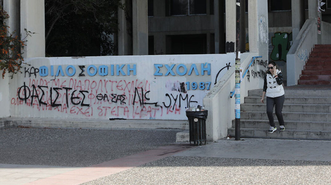 Την Τρίτη, λοιπόν, το απόγευμα και κατά τη διάρκεια εξέτασης μαθήματος που διδάσκει η κ. Ευθυμίου, άτομα που υπογράφουν ως «αναρχικό στέκι φιλοσοφικής» πέταξαν κείμενα στην αίθουσα εξέτασης και έγραψαν συνθήματα στα γραφεία των καθηγητών της σχολής.