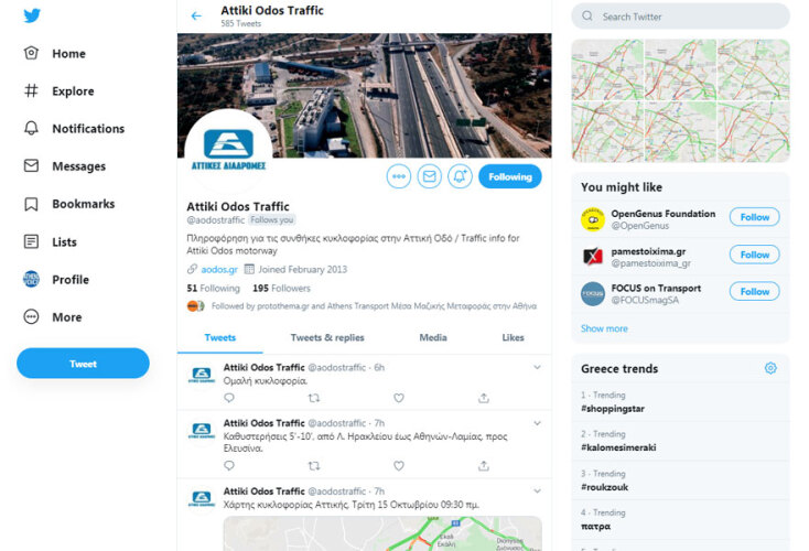 Η Αττική Οδός έφτιαξε Twitter και ενημερώνει για τo πού έχει κίνηση