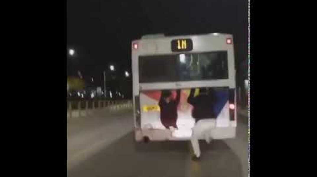 Επικίνδυνο παιχνίδι: Νεαροί κρέμονται από λεωφορείο του ΟΑΣΘ