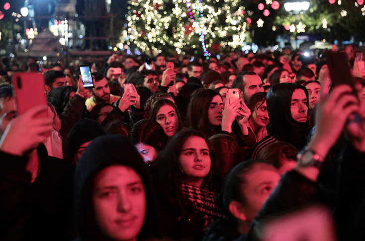 Η βροχή δεν φάνηκε να πτοεί τις Αθηναίες και τους Αθηναίους που βρέθηκαν στο Σύνταγμα το απόγευμα, για την πολυαναμενόμενη φωταγώγηση της πόλης, το άναμμα του φυσικού δέντρου -ύψους 17 μέτρων- που κοσμεί την πλατεία από τον δήμαρχο Αθηναίων, Κώστα Μπακογιάννη.