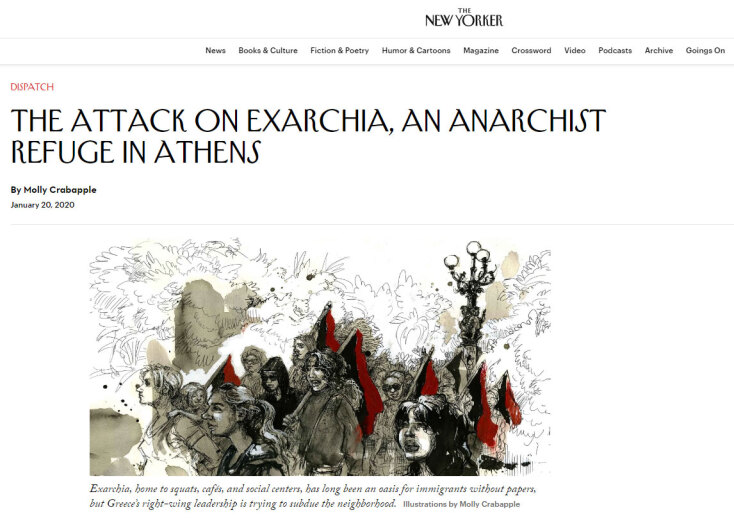 «Τα Εξάρχεια αποτελούν ένα αναρχικό προπύργιο γεμάτο γκραφίτι, έδρα καταλήψεων, καφέ, βιβλιοπωλείων και κοινωνικών κέντρων» αναφέρει το New Yorker.