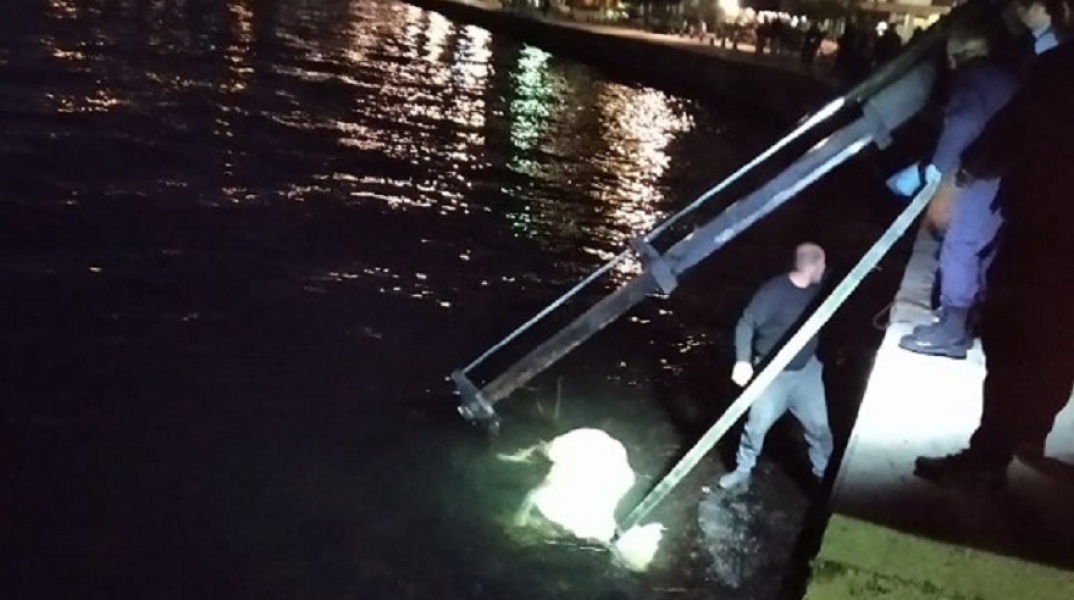 Το πτώμα μίας αγελάδας βρέθηκε να επιπλέει στα νερά του Θερμαϊκού Κόλπου και χρειάστηκε ειδικό κλιμάκιο του δήμου για την ανάσυρσή του.