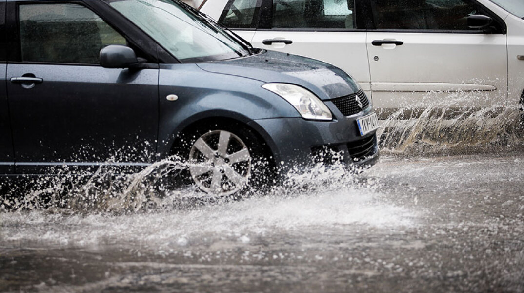 Καθίζηση σε δρόμο στο Παλαιό Φάληρο λόγω της βροχόπτωσης.