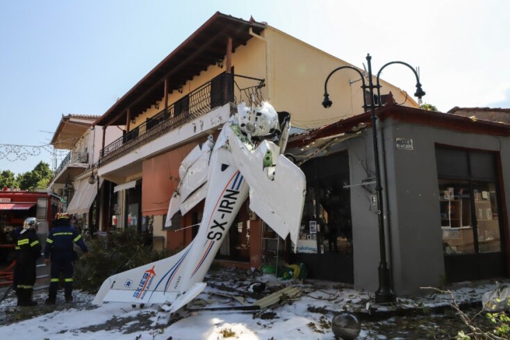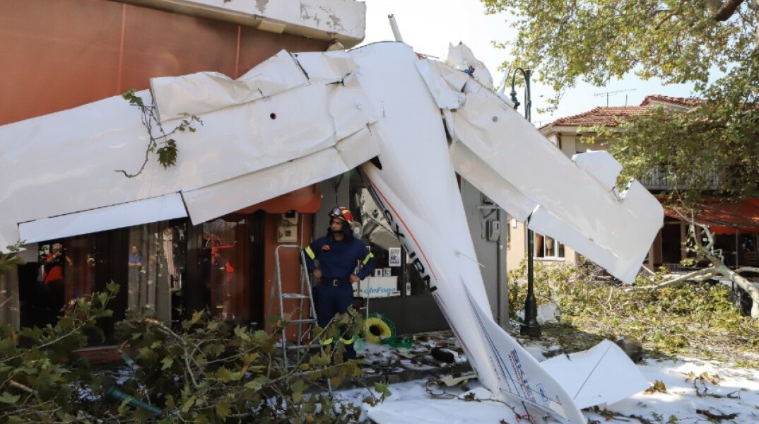 Το αεροσκάφος παρέσυρε κλαδιά του πλατάνου της πλατείας και σε απόσταση ελάχιστων μέτρων λειτουργούν καφετέριες, ένα σούπερ μάρκετ, ένα φαρμακείο και άλλα καταστήματα.