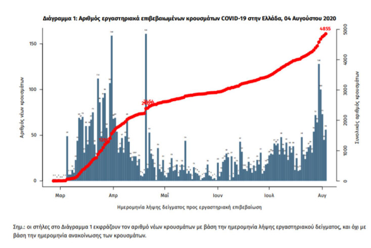 Νεότερα στοιχεία για τα νέα κρούσματα κορωνοϊού στην Ελλάδα παρουσιάστηκαν σήμερα Τρίτη 4 Αυγούστου 2020.