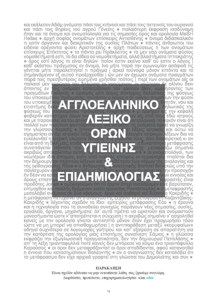 #αγκωνιές #αερολύματα #αντισηπτικό #αύξηση κρουσμάτων #ασυμπτωματικός φορέας #αντιεμβολιαστικό κίνημα #αναγκαστική λήψη μέτρων #απαγόρευση συναθροίσεων #αποζημίωση λόγω κόβιντ #αυτοαπομόνωση #ασπίδα προσώπου #ανοσμία #ασθενής μηδέν #ανέπαφες συναλλαγές #ανοσία αγέλης #άδεια κυκλοφορίας με SMS #αρνητές μάσκας #ανώτερο αναπνευστικό σύστημα #βήχας #βιολογικό όπλο #CDC (Κέντρο Ελέγχου Νοσημάτων στις ΗΠΑ) #γενετιστής #γάντια μιας χρήσης #γρίπη #γενικευμένη χρήση μάσκας #δεξαμεσαζόνη #δείκτης R0 #δειγματοληπτικοί έλεγχοι #διασωληνωμένοι ασθενείς #διασπορά στην κοινότητα #ΕΟΔΥ (Εθνικός Οργανισμός Δημόσιας Υγείας) #διεγνωσμένα κρούσματα #έκθεση επιδημιολογικής επιτήρησης #εμβόλιο #επιδημιολογία λυμάτων #εστία υπερμετάδοσης #εγκλεισμός #έξαρση κρουσμάτων #επιδημιολογικό φορτίο #έκτακτη ενημέρωση #εθελοντές #ευρωπαικά κονδύλια για τον κορωνοιό #ευπαθείς ομάδες #ECDC (Ευρωπαϊκό Κέντρο Πρόληψης και Ελέγχου Νοσημάτων) #επίταξη ιδιωτικών κλινών #ημερήσιος αριθμός κρουσμάτων #ημερήσιος απολογισμός #θεία κοινωνία #θερμομέτρηση #θνητότητα #θνησιμότητα #ιικό φορτίο #ιχνηλάτηση #καραντίνα #κοινωνική αποστασιοποίηση #κοινωνική φούσκα #κρίση #κλινικές δοκιμές #κουτουλάμε αγκώνες #καθολική χρήση μάσκας #κλείσιμο καταστημάτων #κόπωση #κουσούρι #κυνίνη #κόλλησε το χτικιό #καιροί αποκάλυψης #καμπύλη θανάτου #λοιμωξιολόγος #μαζικά τεστ #μέτρα προφύλαξης #μίνι lockdown #μοριακό τεστ ανίχνευσης #μολυσματικός #μαντηλάκια με οινόπνευμα #μάσκες μιας χρήσης #μετάλλαξη (του ιού), #μήνυμα από το 112 #μένουμε σπίτι #μένουμε ασφαλείς #μονάδες COVID (στα δημόσια νοσοκομεία) #ΜΕΘ (Μονάδες Εντατικής Θεραπείας) #νέοι θάνατοι #ξενοδοχεία καραντίνας #ομάδες υψηλού κινδύνου #οδηγίες διαχείρισης κρούσματος #παρενέργειες #περιπολικό με ντουντούκα #πλύσιμο υφασμάτινης μάσκας #Πολιτική Προστασία #πειραματική θεραπεία #πλύσιμο χεριών 20' #πυρετός #προληπτική καραντίνα #πλεξιγκλάς διαχωριστικά #ΠΟΥ (Παγκόσμιος Οργανισμός Υγείας) #πρόστιμα (για παραβίαση μέτρων) #προσωπικό υγείας #ρεκόρ κρουσμάτων #ρεμδεσιβίρη #rapid τεστ #SARS ιός #συναγερμός κρουσμάτων #συνωστισμός #συνδιασμός φαρμάκων #στατιστικά #σχολαστικό πλύσιμο χεριών #σταγονίδια #Σουηδικό μοντέλο #συνομωσιολόγοι #συμπτώματα #συστήματα υγείας #στο κόκκινο #τοπικό απαγορευτικό #τσιπάκι #τρόποι μετάδοσης #υπερμετάδοση #υγειονομικός χάρτης #υδροξυλοχλωροκίνη #ύφεση #υποκείμενα νοσήματα #φορέας, #φορτίο περιστατικού #fake news #φτέρνισμα #χειρουργικές μάσκες #χορήγηση αντιστωμάτων #χτικιό #ψευτογιατρός #ψυχολογικές επιπτώσεις.