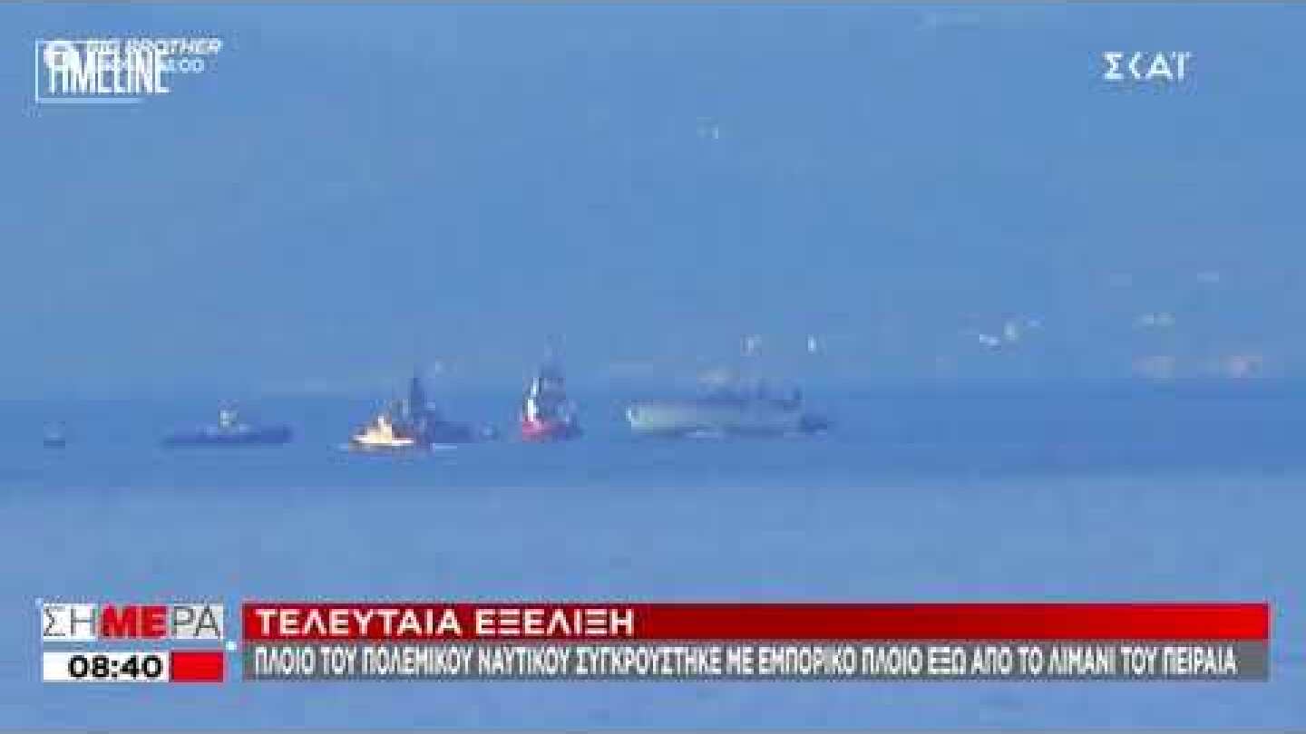 Πειραιάς: Ξεκίνησε η επιχείρηση ρυμούλκησης του ναρκοθηρευτικού «Καλλιστώ» μετά τη σύγκρουση με το φορτηγό πλοίο MAERSK LAUNCESTON.