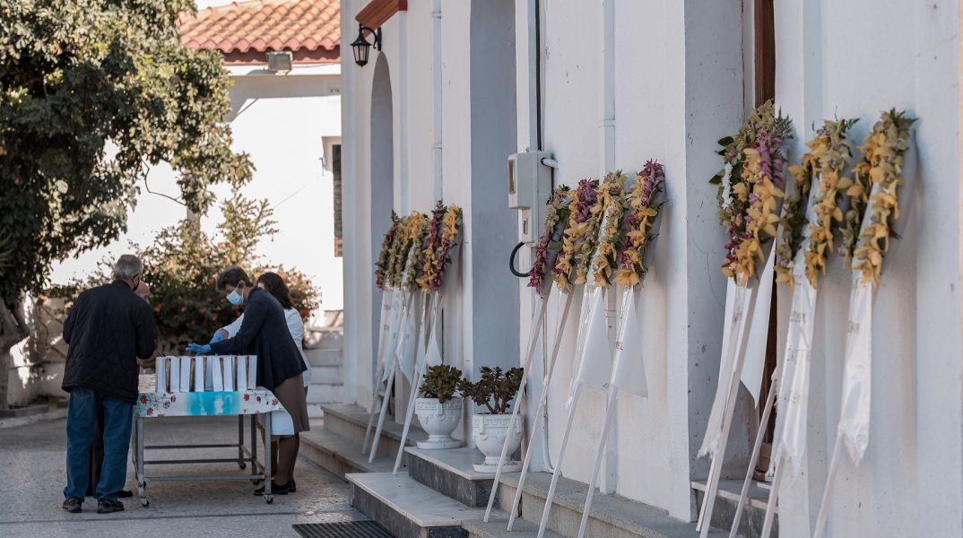 Πλήθος κόσμου συγκεντρώθηκε το μεσημέρι στον ιερό ναό του Αγίου Νικολάου στο Βαθύ Σάμου για να πει το τελευταίο αντίο στον 17χρονο Άρη, που έχασε τη ζωή του μαζί με την 15χρονη Κλαίρη όταν καταπλακώθηκαν από την κατάρρευση τοίχου μετά τον σεισμό των 6,7 Ρίχτερ που έπληξε το νησί.