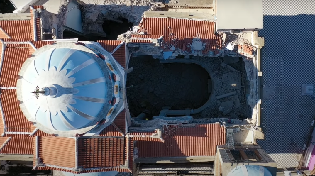 Οι ζημιές στον ναό Κοιμήσεως της Θεοτόκου από ψηλά
