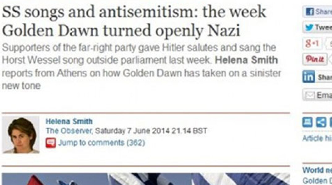 Guardian: Ναζιστικό κόμμα η Χρυσή Αυγή