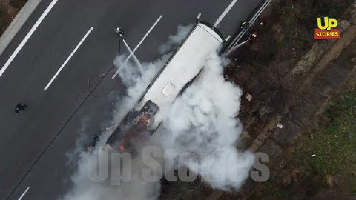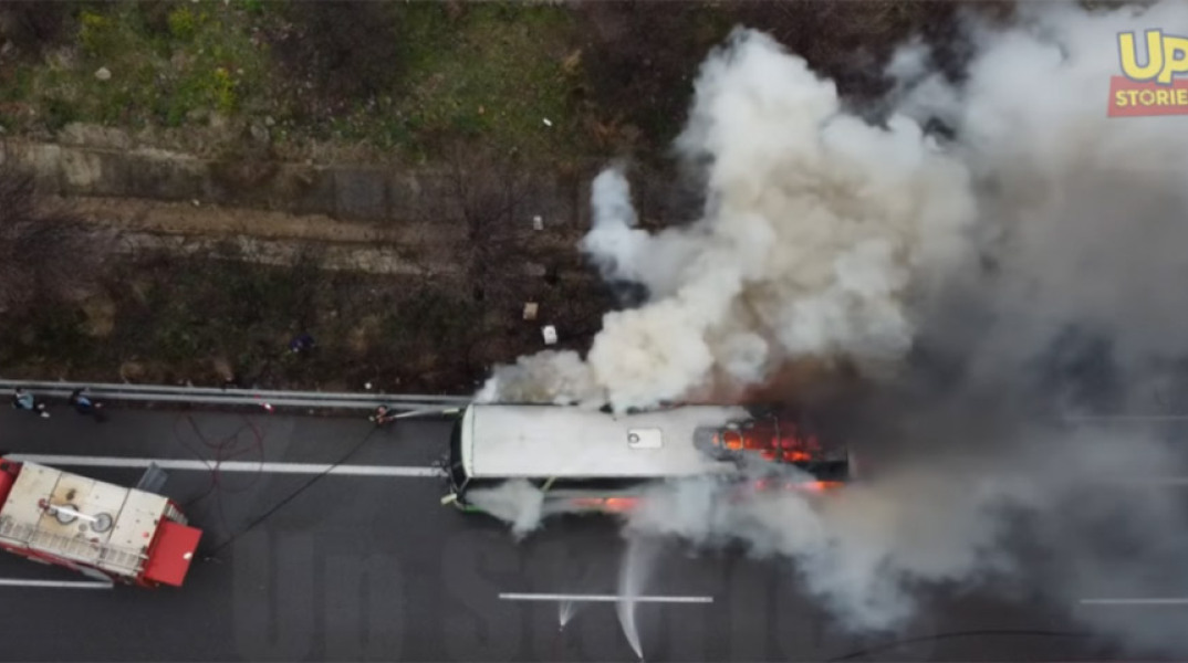 Όταν έφτασαν τα πυροσβεστικά οχήματα το λεωφορείο είχε καεί. Η εθνική οδός έκλεισε μόνο για λίγη ώρα και η κυκλοφορία έχει αποκατασταθεί.