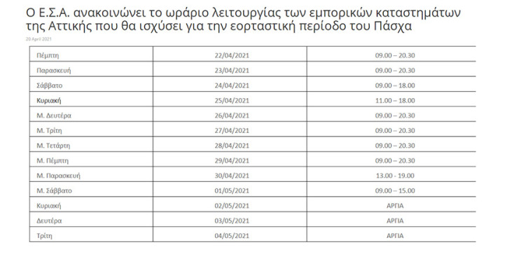 Πάσχα - Εορταστικό ωράριο καταστημάτων