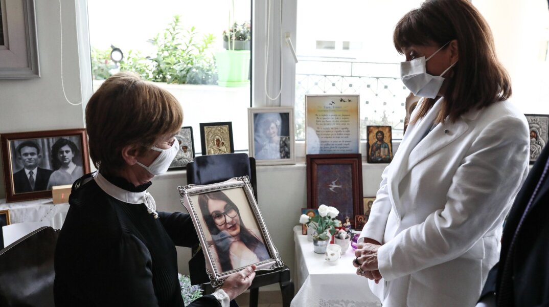 Η πρόεδρος της Δημοκρατίας, Κατερίνα Σακελλαροπούλου, επισκέφθηκε το σπίτι των γονιών της δολοφονημένης Ελένης Τοπαλούδη