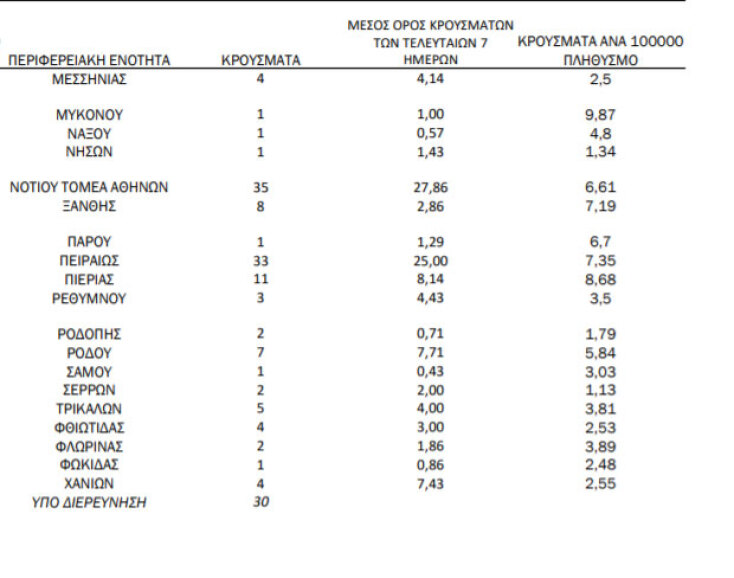 - 7 κρούσματα στην Π.Ε. Δυτικής Αττικής