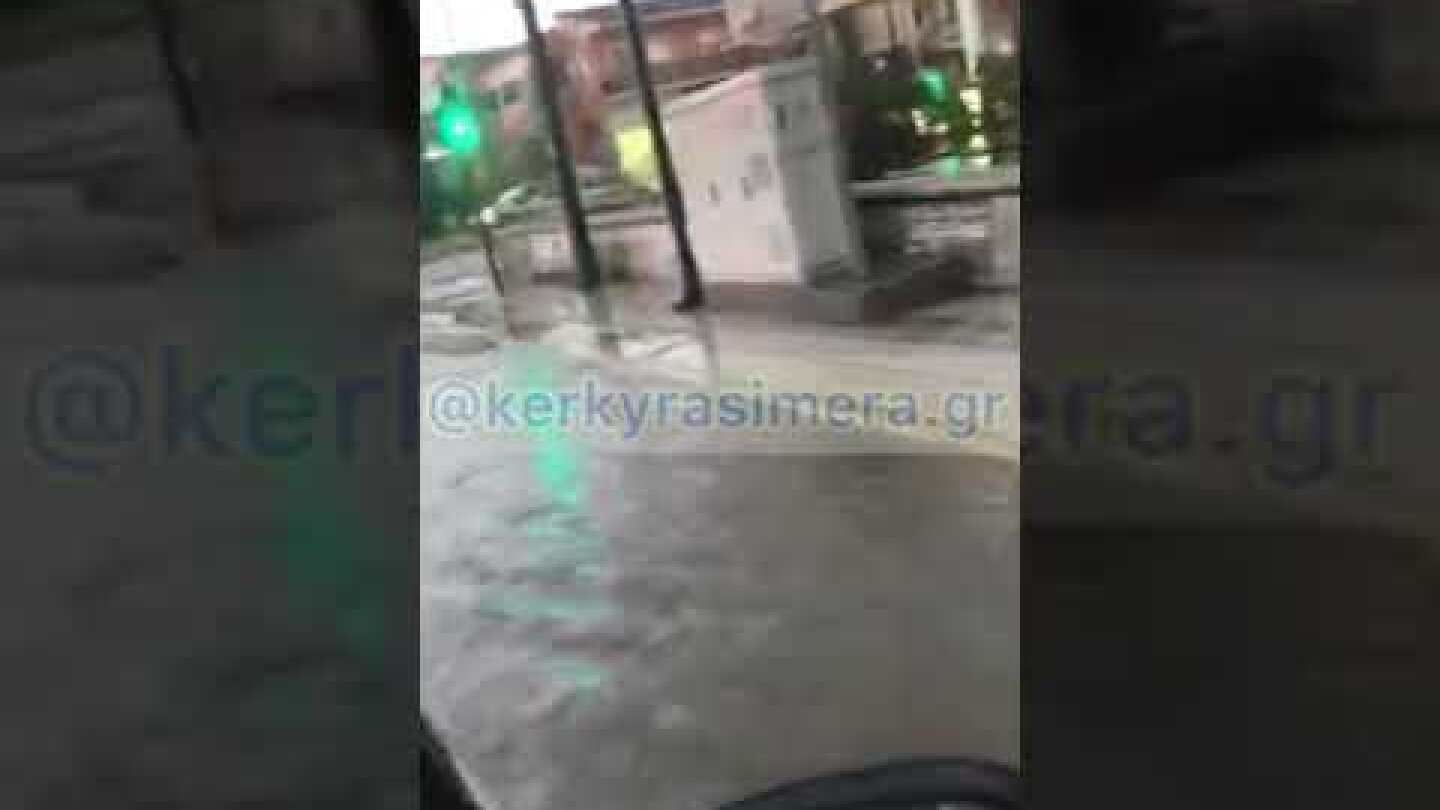 Κακοκαιρία «Αθηνά» - Κέρκυρα: Κεντρικοί δρόμοι έγιναν ποτάμια