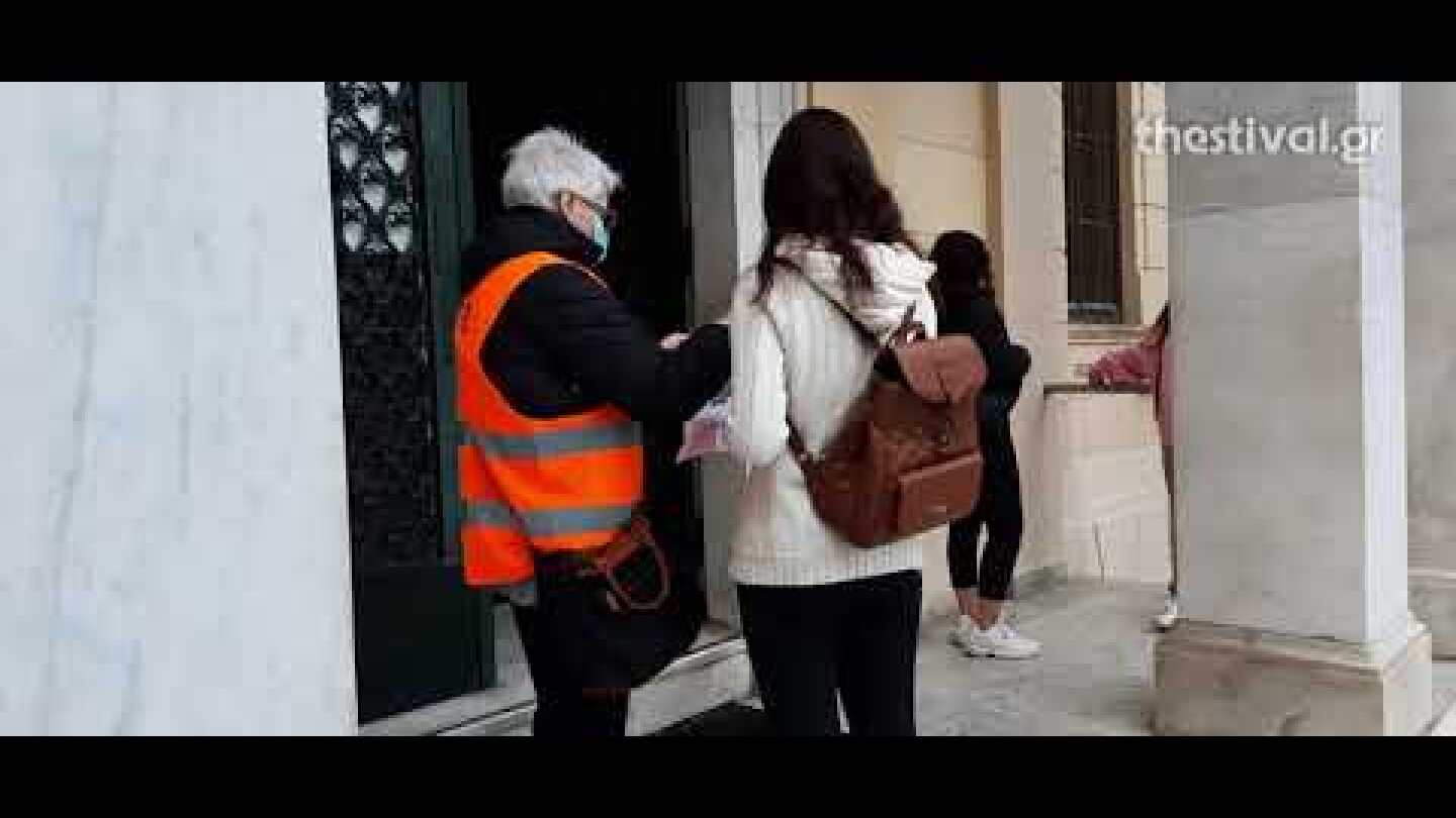 Στο Πανεπιστήμιο Μακεδονίας η «ουρά» που σχηματίστηκε στον πεζόδρομο της οδού Εγνατία, έξω από το ΠΑΜΑΚ είναι μεγάλη για τους σπουδαστές.
