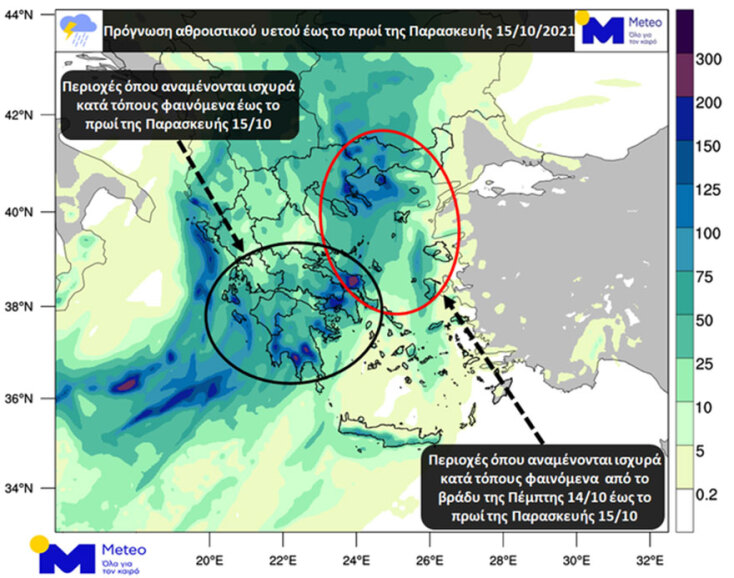 Σημειώνεται ότι ισχυρές βροχές και καταιγίδες αναμένονται και στην Αττική από το μεσημέρι της Πέμπτης 14/10 έως το μεσημέρι της Παρασκευής 15/10. Παράλληλα, υπάρχει πιθανότητα χαλαζοπτώσεων.