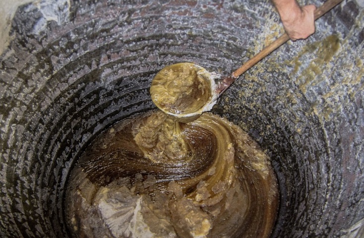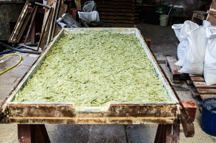 «Αφού ολοκληρωθεί η χημική αντίδραση, η λεγόμενη σαπωνοποίηση, στη συνέχεια το επεξεργαζόμαστε με διαλύματα αλατιού, μια διαδικασία που διαρκεί περίπου δέκα μέρες. Όταν ολοκληρωθεί το βράσιμο του σαπουνιού, το βγάζουμε χειρονακτικά, χρησιμοποιώντας κουτάλες και το τοποθετούμε σε ξύλινα τελάρα. Εκεί στεγνώνει, το σφραγίζουμε, το χαράζουμε και δημιουργούμε τις πλάκες του σαπουνιού, οι οποίες μένουν σε ξύλινα ξηραντήρια για ένα διάστημα τουλάχιστον 4 μηνών, ώστε να στεγνώσουν και ωριμάσουν» εξηγεί ο κ. Πατούνης, ο οποίος αναφέρει ότι είναι μεν μια χρονοβόρα διαδικασία, αλλά είναι ένας παράγοντας που συμβάλλει στην ιδιαιτερότητα του προϊόντος. «Πάντως, αυτό που θεωρώ ότι κάνει τη διαφορά, είναι η τεχνοτροπία που έχε περάσει από πατέρα σε γιο, το πως επεξεργαζόμαστε το σαπούνι μέσα στο καζάνι».