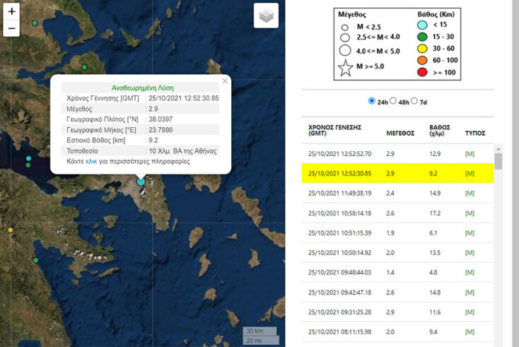 Σεισμός τώρα στην Αττική - Ο χάρτης με το επίκεντρο και το βάθος της δόνησης