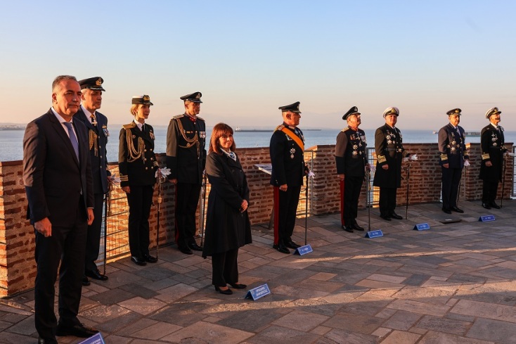 Νωρίς το πρωί και ειδικότερα στις 8:00 παρουσία της Προέδρου της Δημοκρατίας, ο δήμαρχος Θεσσαλονίκης Κωνσταντίνος Ζέρβας πραγματοποίησε την επίσημη έπαρση της σημαίας μαζί με τον Διοικητή του Γ’ Σώματος Στρατού στον Λευκό Πύργο.
