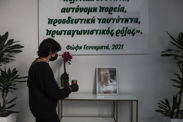 Η λιτή τελετή έγινε μετά το μνημόσυνο για τη Φώφη Γεννηματά στο Α' Νεκροταφείο Αθηνών, 40 ημέρες μετά τον θανατό της.