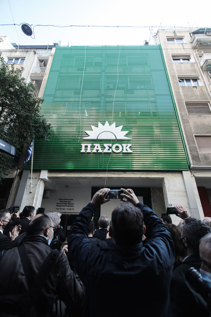 Ο ήλιος του ΠΑΣΟΚ βρήκε ξανά τη θέση του στη Χαριλάου Τρικούπη, ανέφεραν πολίτες που πήγαν στα κεντρικά γραφεία σήμερα Κυριακή 28 Νοεμβρίου 2021, προκειμένου να δουν από κοντά τη νέα πρόσοψη και τις αλλαγές στην είσοδο του κτιρίου.