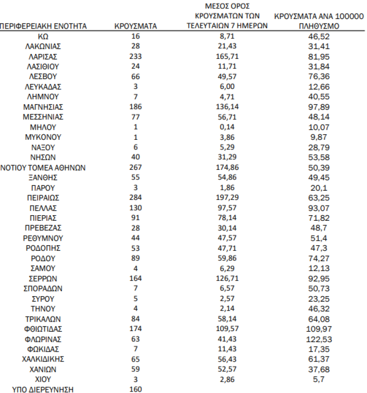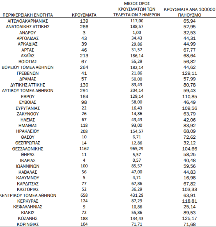 Γεωγραφική κατανομή για τα 7.486 κρούσματα σήμερα Τρίτη 30 Νοεμβρίου 2021 - Οι πίνακες του ΕΟΔΥ