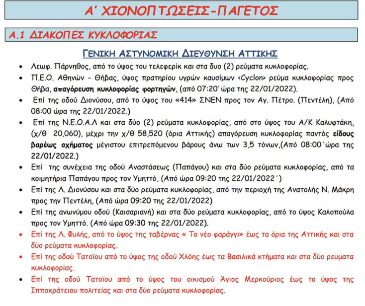 24-1-2022 10:53 ΔΙΑΚΟΠΗ ΤΗΣ ΚΥΚΛΟΦΟΡΙΑΣ ΤΩΝ ΟΧΗΜΑΤΩΝ