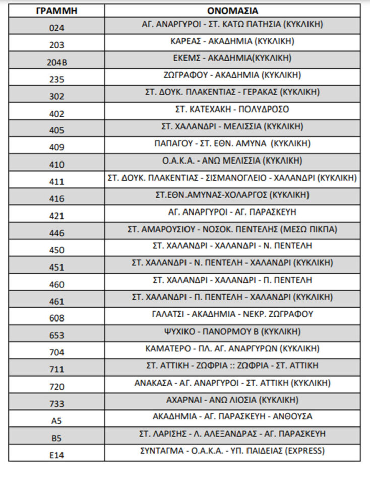 Όπως ανακοινώθηκε, οι λεωφορειακές γραμμές Αεροδρομίου Χ93, Χ95, Χ96 και Χ97 λειτουργούν κανονικά. Από τις νυχτερινές γραμμές λειτουργούν οι ακόλουθες: