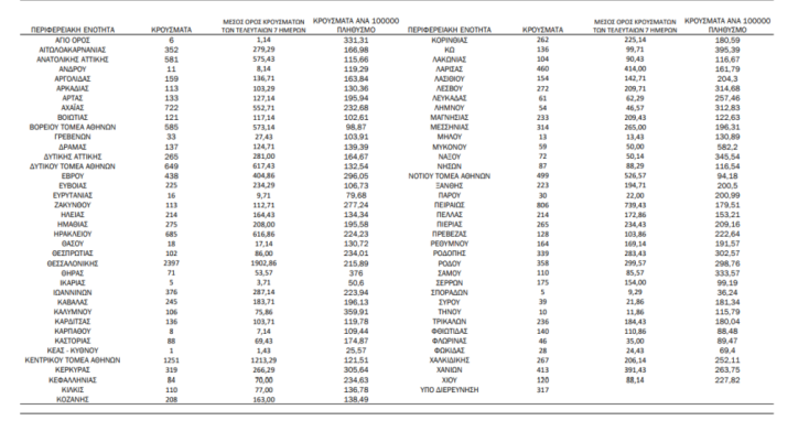 Αναλυτικότερα τα κρούσματα στις περιφερειακές ενότητες που ανήκουν στην Αττική: