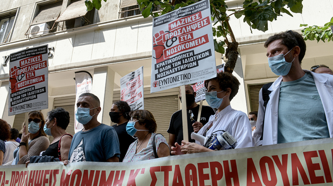 Οι δύο Ομοσπονδίες προγραμματίζουν συγκέντρωση στις 8:30 στην πλατεία Μαβίλη και πορεία προς το υπουργείο Υγείας. Η ΟΕΝΓΕ αναφέρει ότι το προσωπικό των νοσοκομείων έμεινε «αβοήθητο να προσπαθεί να αποκρούσει το ένα μετά το άλλο πανδημικό κύμα, με τραγικές ελλείψεις σε προσωπικό, υποδομές και εξοπλισμό».