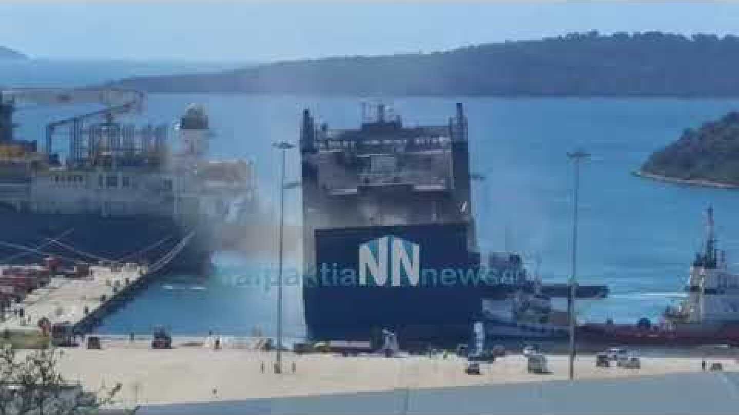 Στελέχη από την Πυροσβεστική και την ΕΜΑΚ επιχειρούν προκειμένου να ανοίξουν τον καταπέλτη του μοιραίου πλοίου και να μπορέσουν να βγάλουν από τα καταστρώματα τους 6 επαγγελματίες οδηγούς φορτηγών που έμειναν εγκλωβισμένοι, όταν ξέσπασε η φωτιά.