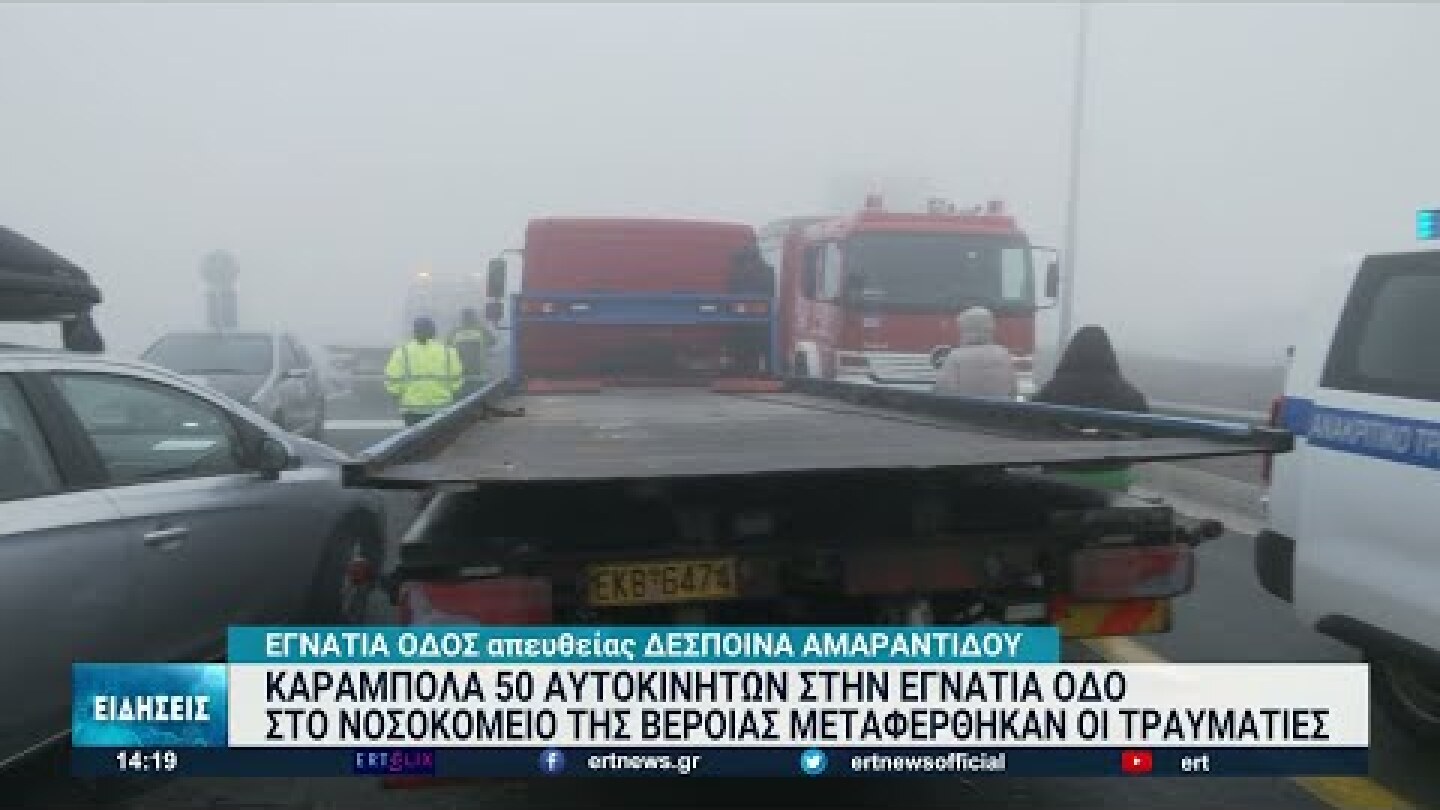 Καραμπόλα με εμπλοκή 50 αυτοκινήτων καταγράφηκε το μεσημέρι της Κυριακής (6/3) στην Εγνατία Οδό στο τμήμα από Βέροια προς Πολύμυλο Κοζάνης, λόγω της πυκνής ομίχλης που επικρατεί στην περιοχή, με συνέπεια 13 άτομα να τραυματιστούν.