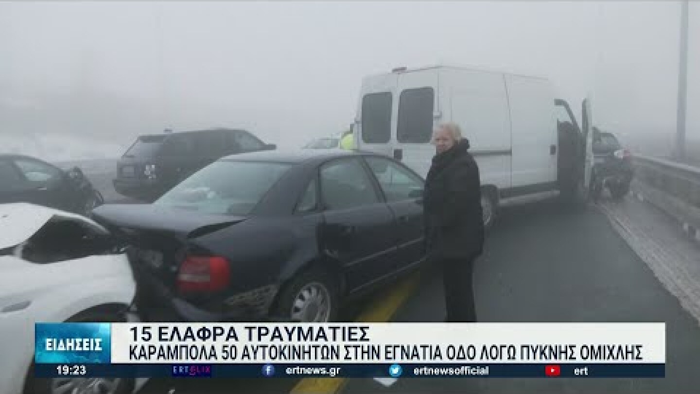 Το τροχαίο ατύχημα στην Εγνατία Οδό, στο οποίο ενεπλάκησαν 50 οχήματα, σημειώθηκε το πρωί της Κυριακής 6 Μαρτίου 2022.