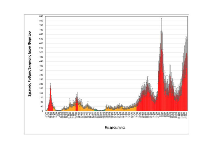 Συγκεκριμένα, στα δείγματα που λαμβάνονται καθημερινά στην είσοδο της εγκατάστασης επεξεργασίας λυμάτων Θεσσαλονίκης, αναφορικά με τις εξορθολογισμένες τιμές σχετικής έκκρισης ιικού φορτίου, η μέση τιμή των δύο πιο πρόσφατων μετρήσεων, δηλαδή της Τετάρτης 30/03/2022 και της Πέμπτης 31/03/2022 είναι: