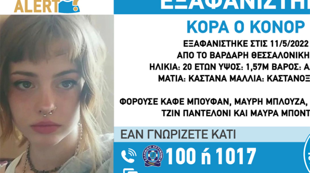 Συναγερμός στη Θεσσαλονίκη για την εξαφάνιση της 20χρονης Κόρα Ο Κόνορ - Η ανακοίνωση του «Χαμόγελου του Παιδιού».