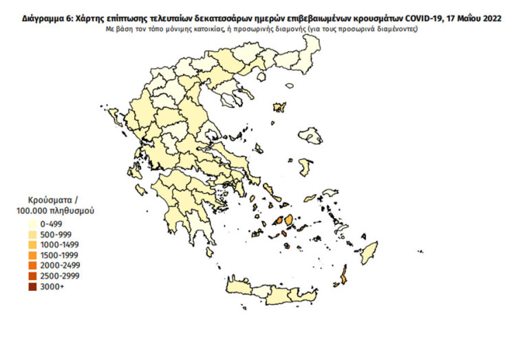 Κορωνοϊός: Η γεωγραφική κατανομή για τα κρούσματα σήμερα, Τρίτη 17 Μαΐου 2022, από τον ΕΟΔΥ - Πού εντοπίζονται.
