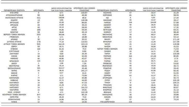 H γεωγραφική κατανομή των κρουσμάτων