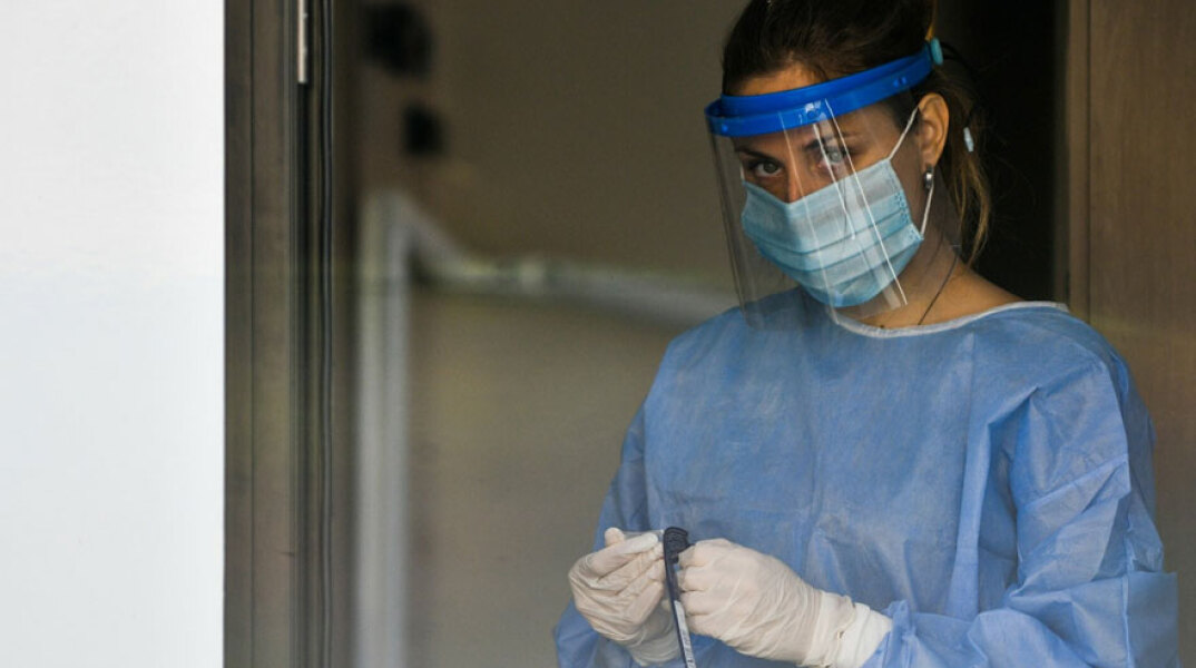 Υγειονομικός του ΕΟΔΥ διενεργεί δωρεάν rapid test για κορωνοϊό