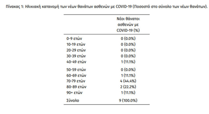 Οι νέοι θάνατοι ασθενών με COVID-19 είναι 9, ενώ από την έναρξη της επιδημίας έχουν καταγραφεί συνολικά 29.976 θάνατοι. Το 95.6% είχε υποκείμενο νόσημα ή/και ηλικία 70 ετών και άνω.
