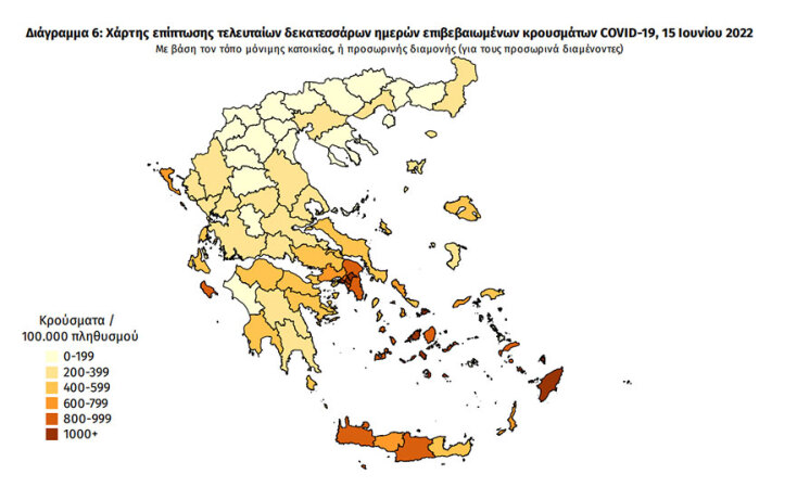Τα κρούσματα σήμερα Τετάρτη (15/6) - Η ανακοίνωση του ΕΟΔΥ και ο χάρτης διασποράς