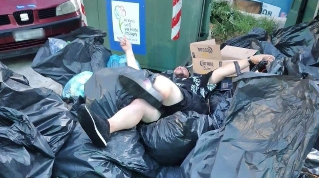 Ρόδος: Μεθυσμένοι τουρίστες ξαπλώνουν σε ξεχειλισμένους κάδους σκουπιδιών.