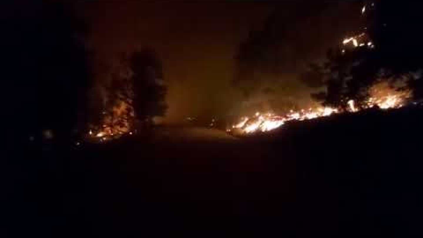 Περιγράφοντας τη διαμορφωθείσα κατάσταση αναφέρει ότι υπάρχουν πυκνοί καπνοί, η φωτιά έχει μεγάλη ένταση και παρά το γεγονός ότι η υφιστάμενη αντιπυρική ζώνη περιμετρικά του χωριού έχει διαπλατυνθεί, το είδος της καιόμενης βλάστησης επηρεάζει τη συμπεριφορά της πυρκαγιάς η οποία υπό συνθήκες θα μπορούσε να περάσει και την αντιπυρική.