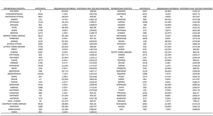 Αναλυτικότερα τα κρούσματα στις περιφερειακές ενότητες που ανήκουν στην Αττική: