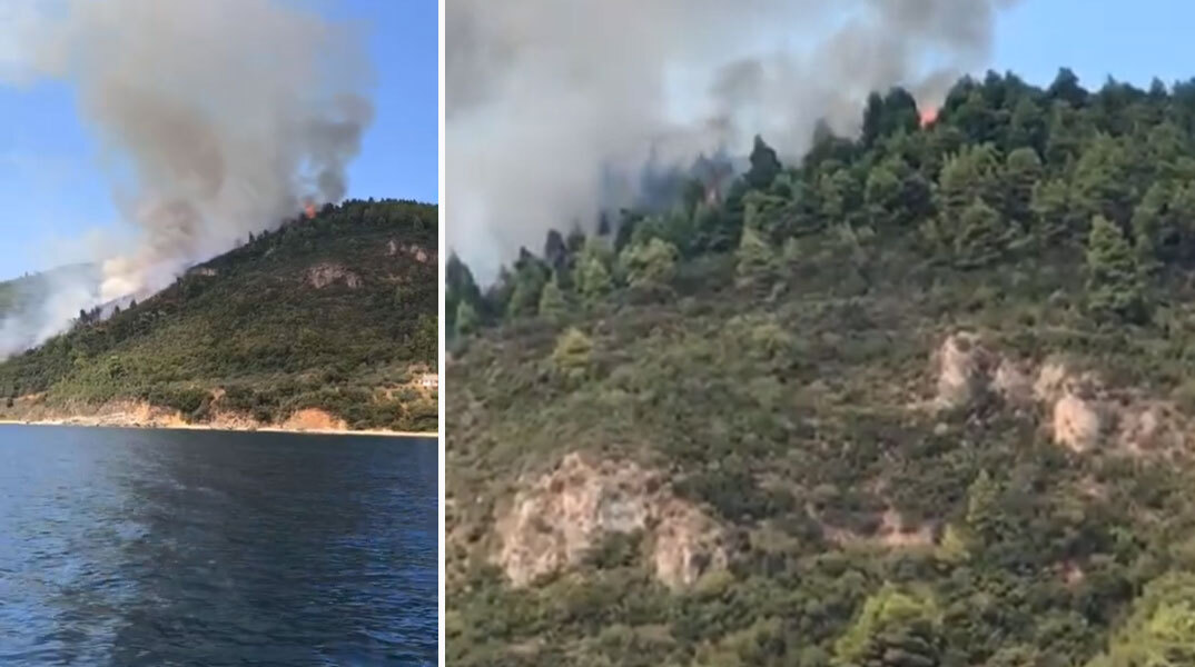 Φωτιά στο Άγιο Όρος - Πυροσβέστες επιχειρούν στην πυρκαγιά (βίντεο)