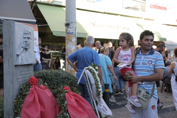 Όπως κάθε χρόνο, έτσι και φέτος, στο μνημείο που στήθηκε προς τιμήν του, κατατέθηκαν στεφάνια και λουλούδια. Με συνθήματα εναντίον του φασισμού και της Χρυσής Αυγής, τα μέλη των αντιφασιστικών οργανώσεων, συνδικάτα, φορείς, φοιτητές και συλλογικότητες ήρθαν να αποτίσουν φόρο τιμής στο αδικοχαμένο μουσικό.